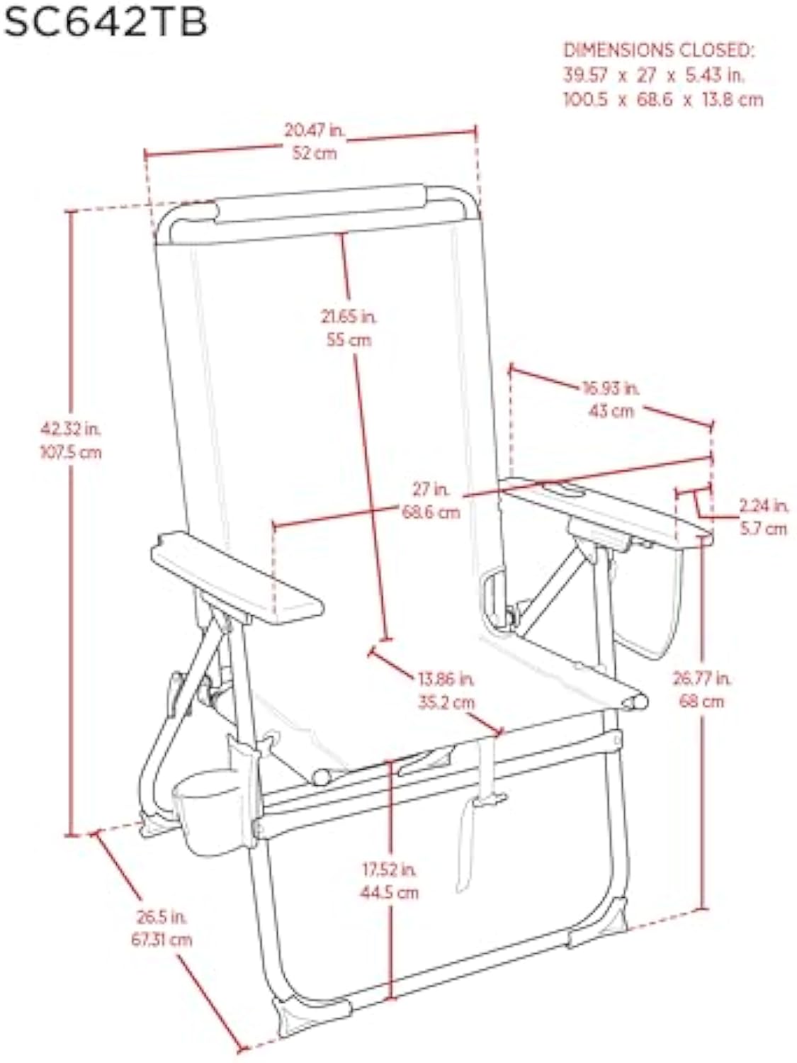 17" HIGH SEAT: Seat sits 17" off the ground, which is ideal for people who have trouble getting up from low beach chairs, and the chair holds up to 300 lbs.
